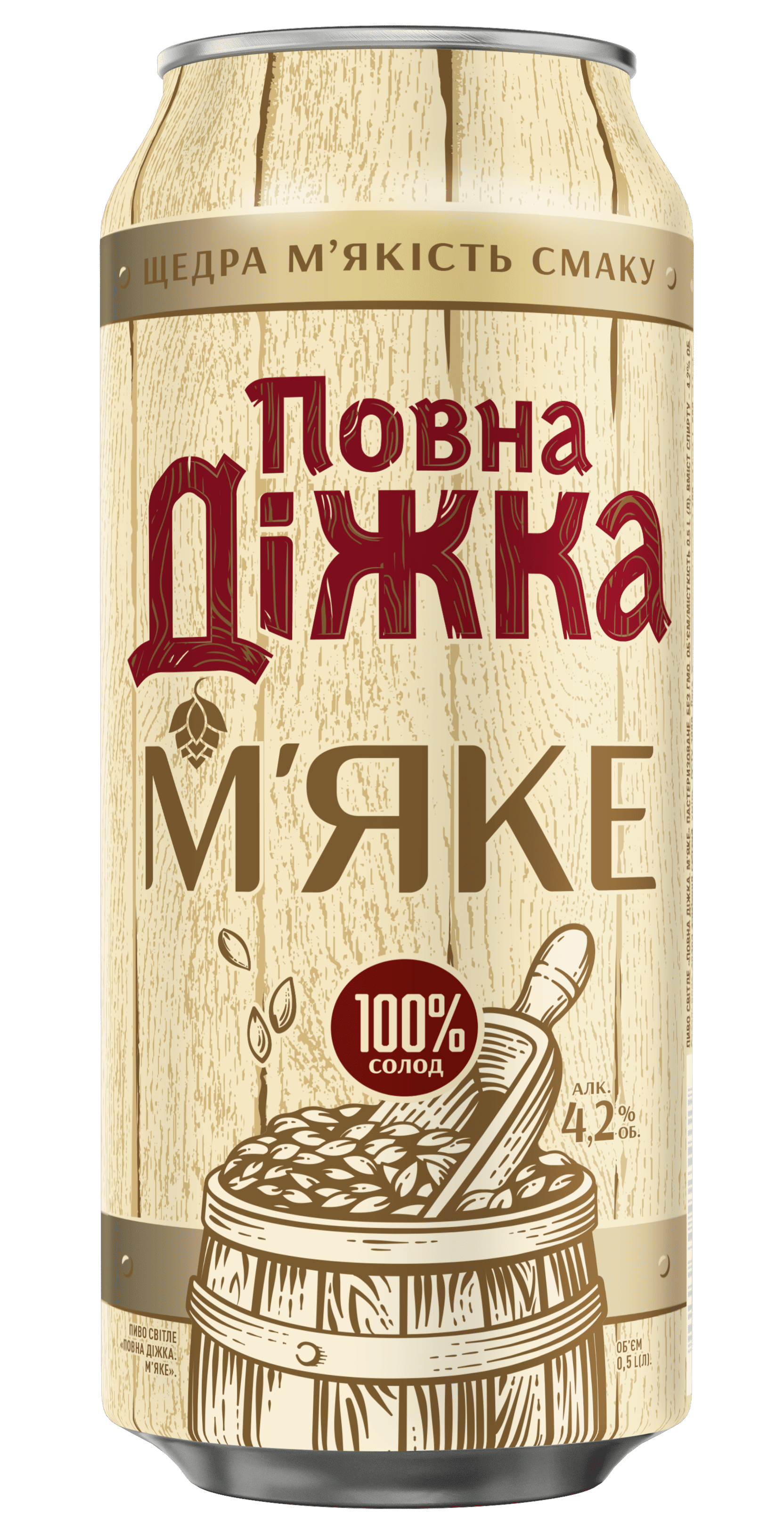 "Povna dizhka M'yake" has a light refreshing taste with subtle notes of malt and a pleasant aftertaste. The peculiarity of this beer type is the use of 100% malt, which gives the beer a pleasant aroma and mild taste.